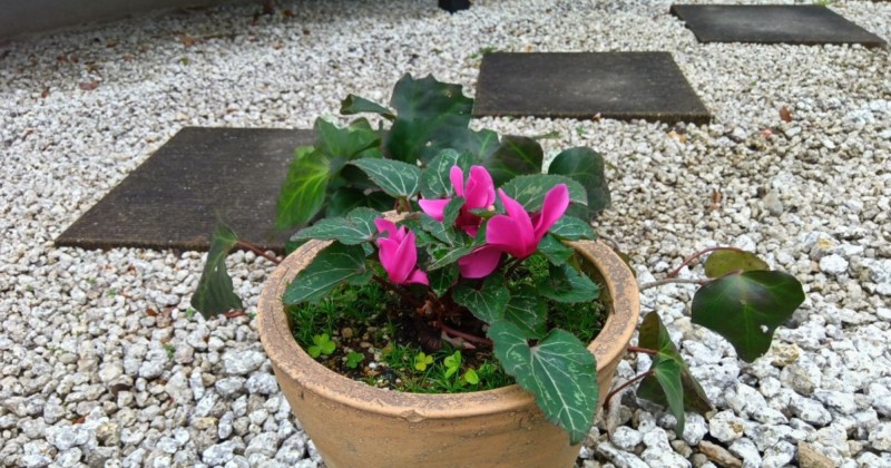 3月に入ってようやく咲き始めたシクラメン。別の鉢のシクラメンはもう花の終わりが近いというのに、この子はとっても遅咲きでした。昨年購入したものが年を越してくれたんです。どんな色だったかも忘れてしまっていました。マゼンタピンク(紫がかった濃いピンク)だったんだね~。とても好きな色です。